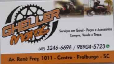 GHELLER MOTOS LTDANewlist20 de mai. de 20211 min de leituraENDEREÇO: AV RENE FREY, 1011BAIRRO: CENTROCIDADE: FRAIBURGO – SC CEP: 89.580-000TELEFONE: (49) 3246-6698