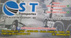 S T PIACENTINI KASPARY EIRELI Newlist16 de jul. de 20211 min de leituraENDEREÇO: R. GUAJUVIRA, 1425BAIRRO: SANTO ANTONIO CIDADE: SANTA IZABEL DO OESTE – PR CEP: 85.650-000TELEFONE: (46) 3542-1105